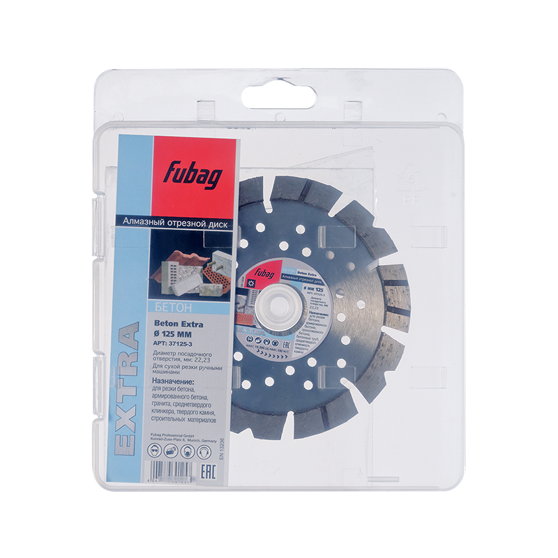 Характеристики Алмазный отрезной диск FUBAG Beton Extra D125 мм/ 22.2 мм по бетону